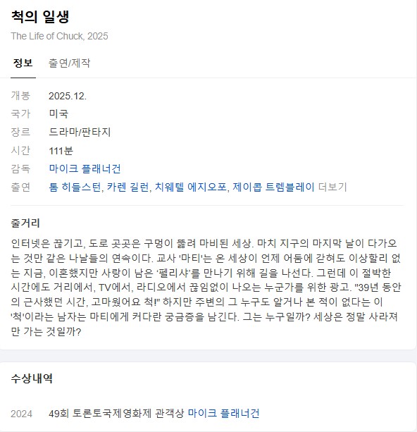 [¿µÈ­-µå¶ó¸¶] ¶óÀÌÇÁ ¿Àºê ô.The Life Of Chuck.2024.1080p.ÇѱÛÀÚ... (4) 2.0G µå¶ó¸¶