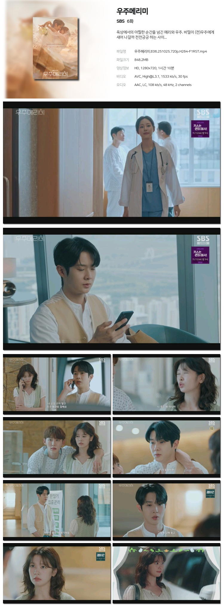 [SBS] ¿ìÁÖ¸Þ¸®¹Ì.E06.251025.720p.H264-F1RST... 848.2M Ãֽŵå¶ó¸¶