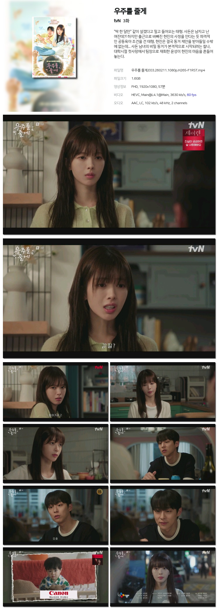 [tvN] ¿ìÁÖ¸¦ ÁÙ°Ô.E03.260211.1080p.H265-F1RST... 1.6G Ãֽŵå¶ó¸¶
