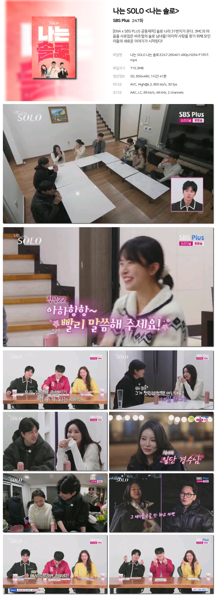 [SBS Plus] ³ª´Â SOLO <³ª´Â ¼Ö·Î>.E247.260401.720p.H264-F1RST... 2.0G ¿¹´É