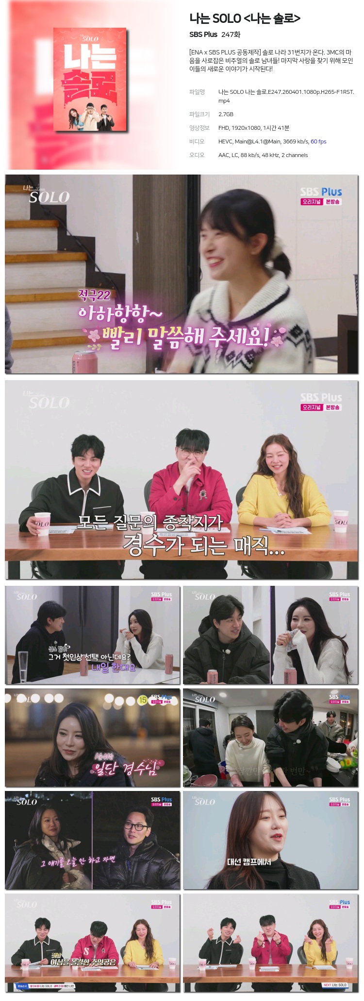 [SBS Plus] ³ª´Â SOLO <³ª´Â ¼Ö·Î>.E247.260401.1080p.H265-F1RST... 2.7G ¿¹´É