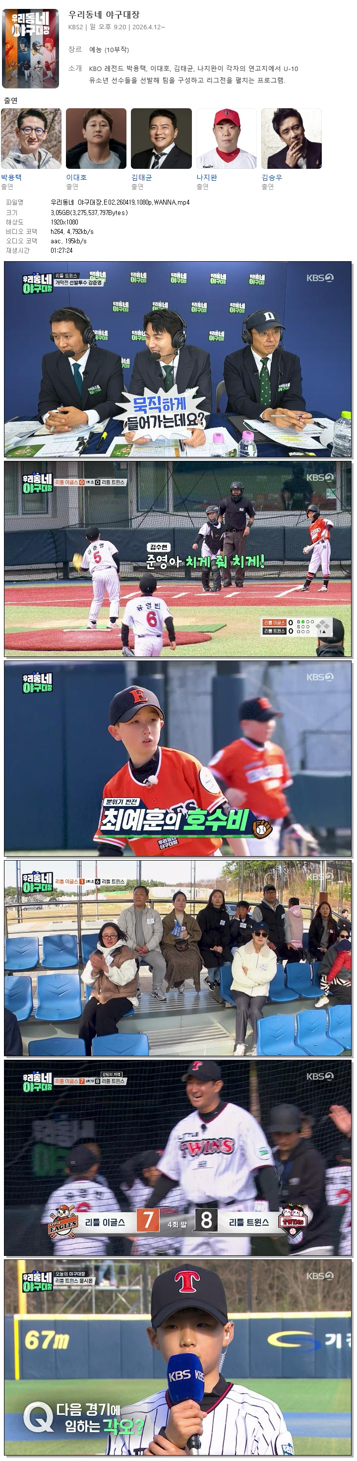 [KBS2] ¿ì¸®µ¿³× ¾ß±¸´ëÀå.E02.260419.1440p.H265-F1RST... 4.4G ¿¹´É
