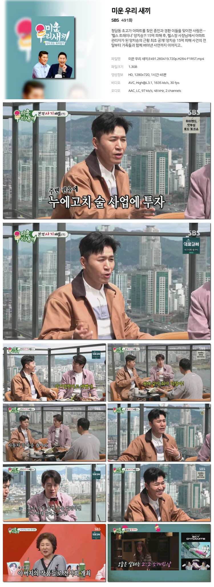 [SBS] ¹Ì¿î ¿ì¸® »õ³¢.E491.260419.720p.H264-F1RST... 1.3G ¿¹´É