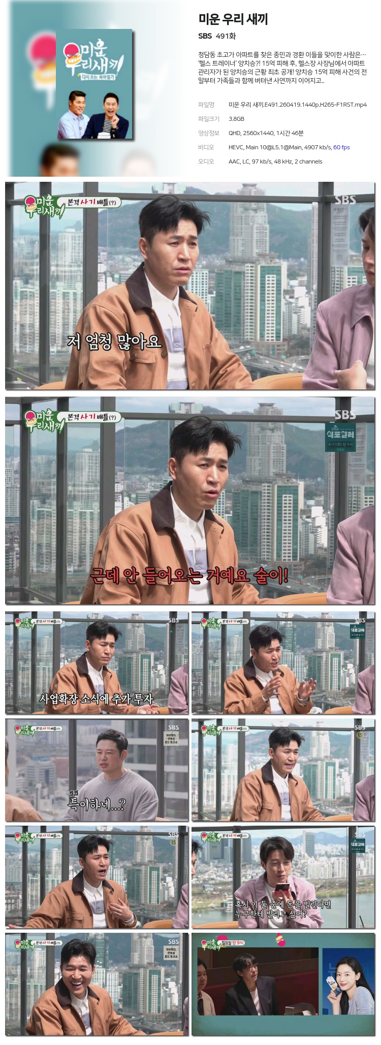 [SBS] ¹Ì¿î ¿ì¸® »õ³¢.E491.260419.1440p.H265-F1RST... 3.8G ¿¹´É