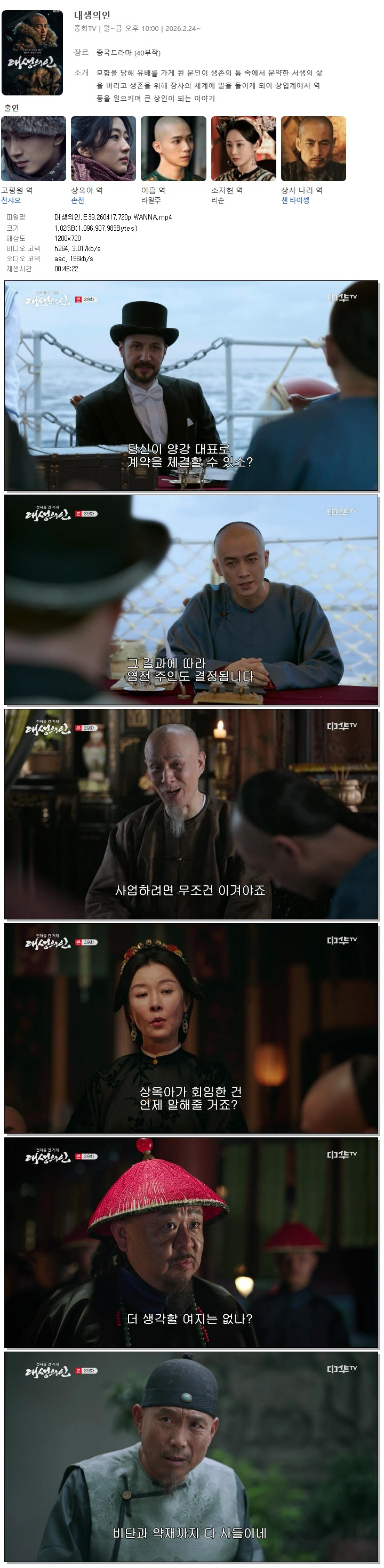 [ÁßÈ­TV] ´ë»ýÀÇÀÎ.E39.260417.720p.H264-F1RST... 1.1G Áßµå