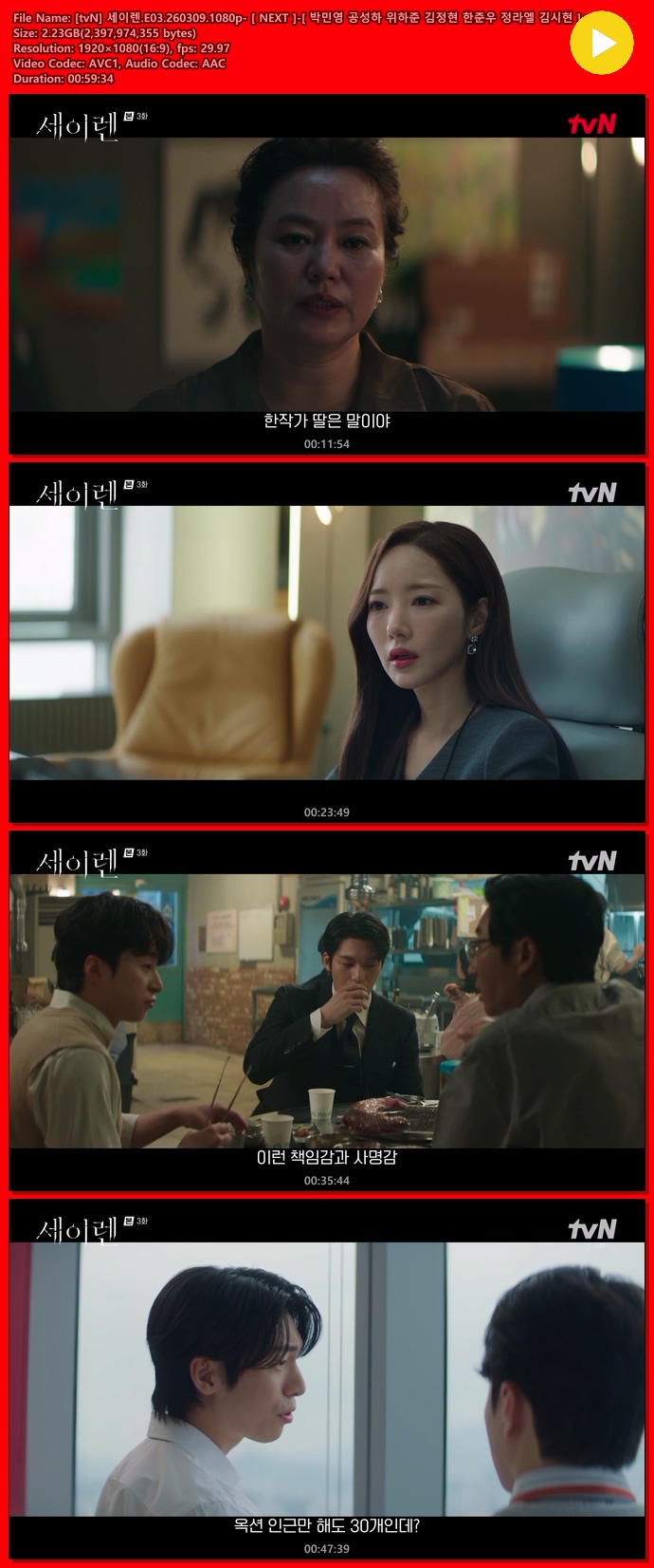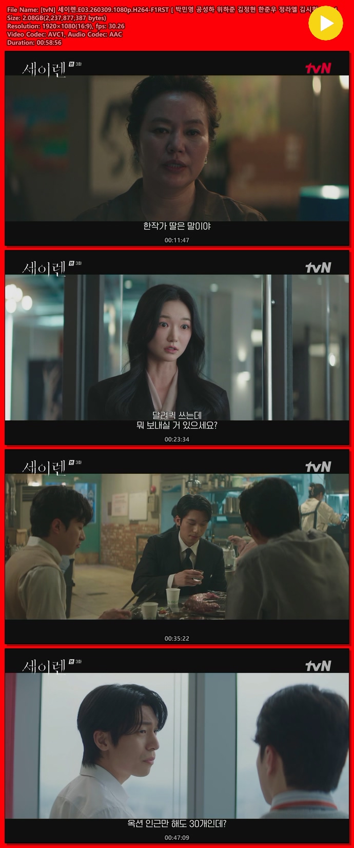 [tvN] ¼¼ÀÌ·».E03.260309.1080p.H264-F1RST [ ¹Ú¹Î¿µ °ø¼ºÇÏ À§ÇÏÁØ ±èÁ¤Çö ÇÑÁØ¿ì Á¤¶ó... 2.1G Ãֽŵå¶ó¸¶