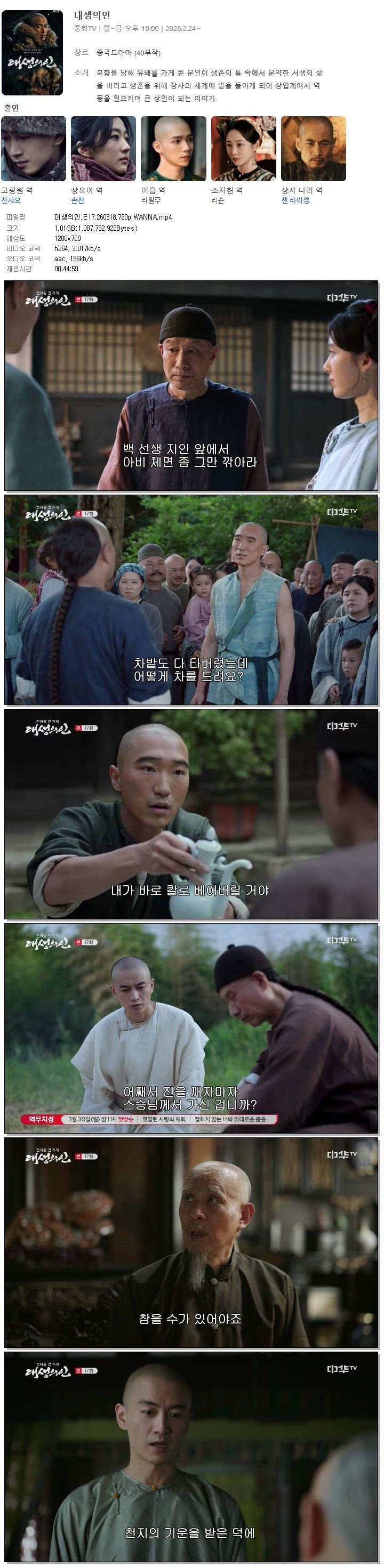 [ÁßÈ­TV] ´ë»ýÀÇÀÎ.E17.260318.720p.H264-F1RST... 1.0G Áßµå