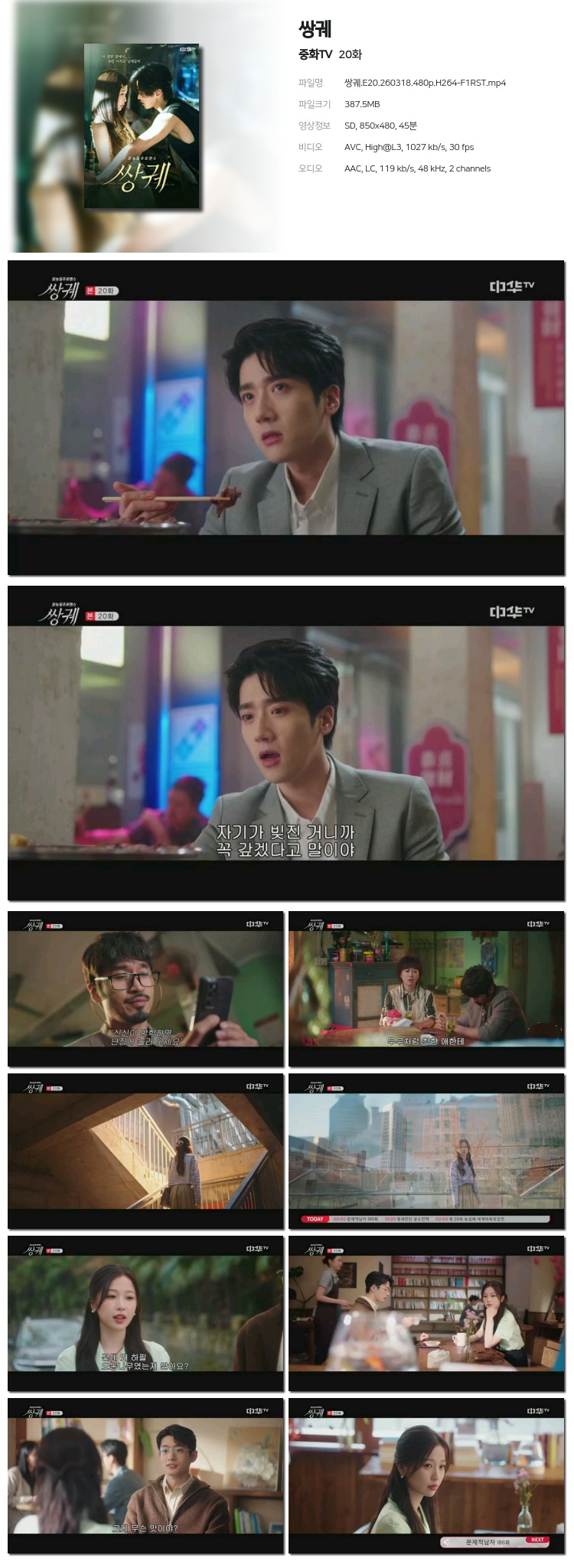 [ÁßÈ­TV] ½Ö±Ë.E20.260318.720p.H264-F1RST... 1.1G Áßµå