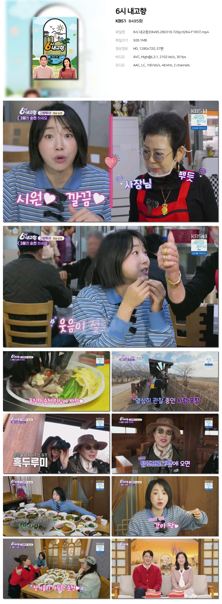 [KBS1] 6½Ã ³»°íÇâ.E8495.260318.720p.H264-F1RST... 926.1M ±³¾ç
