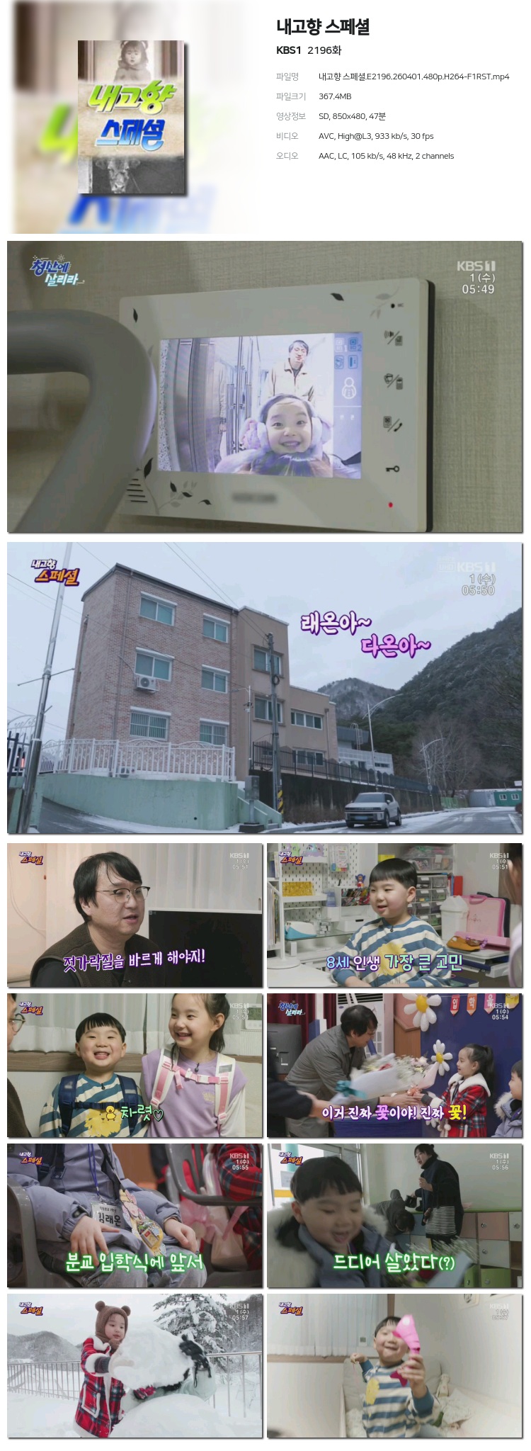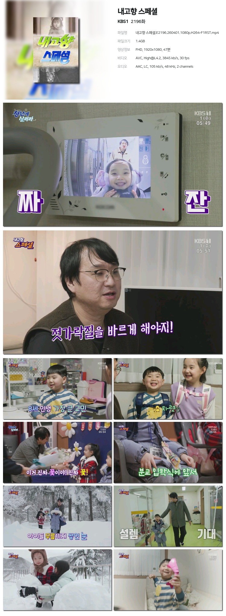 [KBS1] ³»°íÇâ ½ºÆä¼È.E2196.260401.1080p.H264-F1RST... 1.4G ±³¾ç