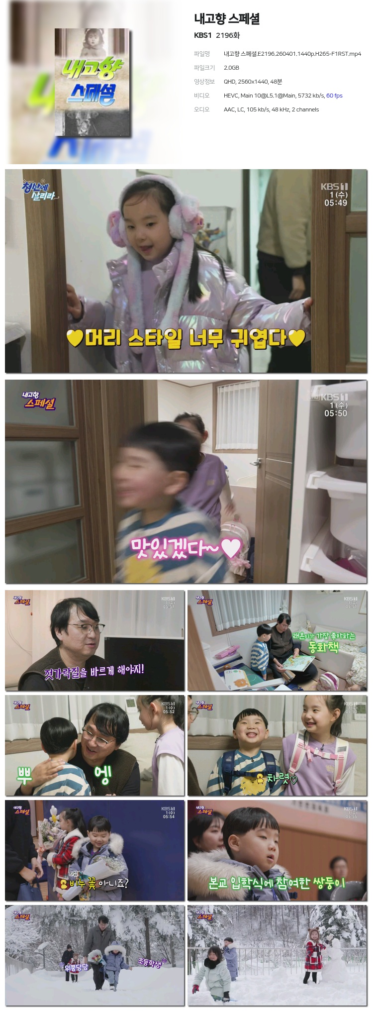 [KBS1] ³»°íÇâ ½ºÆä¼È.E2196.260401.1440p.H265-F1RST... 2.0G ±³¾ç