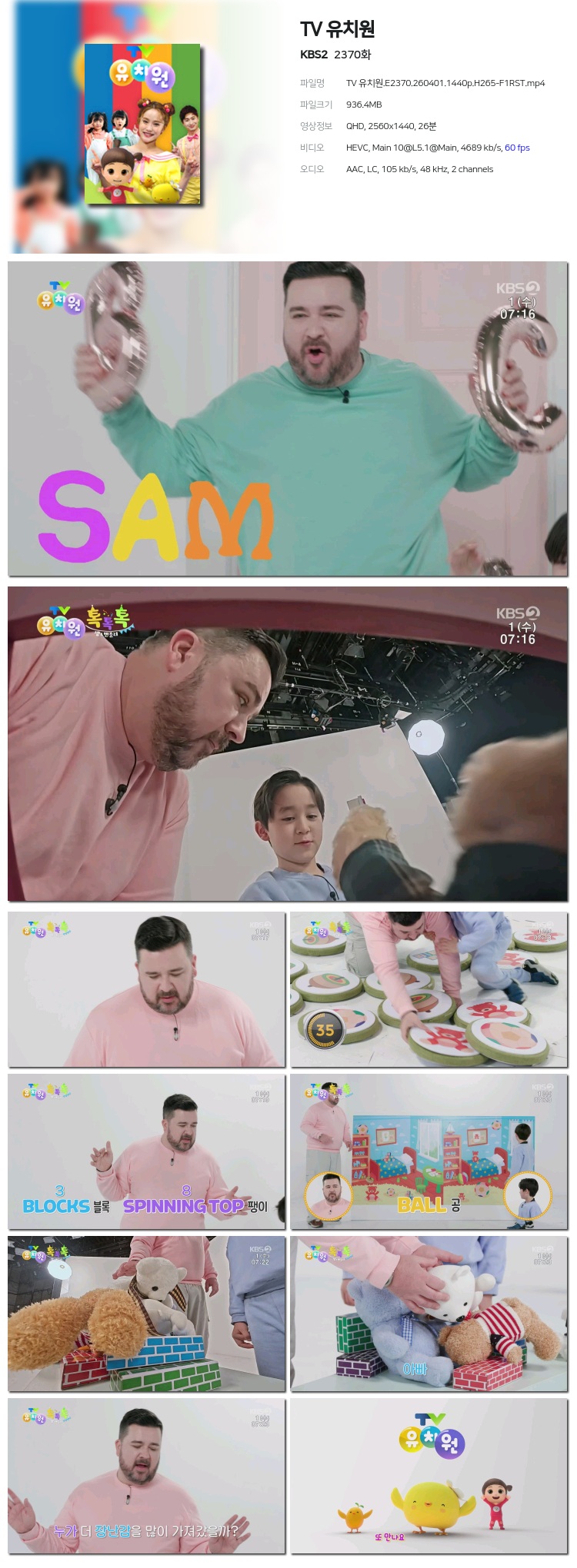 [KBS1] °É¾î¼­¼¼°è¼ÓÀ¸·ÎÆ®·¡ºíȦ¸¯.E371.260401.720p.H264-F1RST... 1.0G ±³¾ç