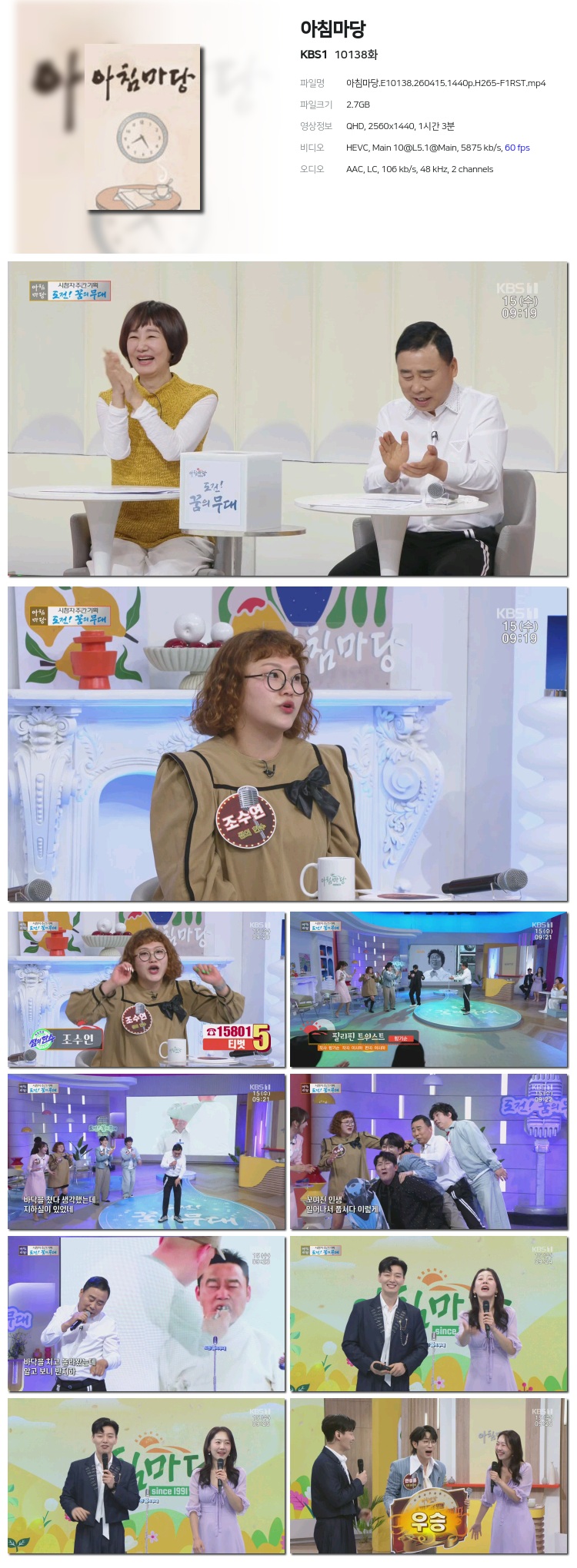 [KBS1] ¾ÆÄ§¸¶´ç.E10138.260415.1440p.H265-F1RST... 2.7G ±³¾ç