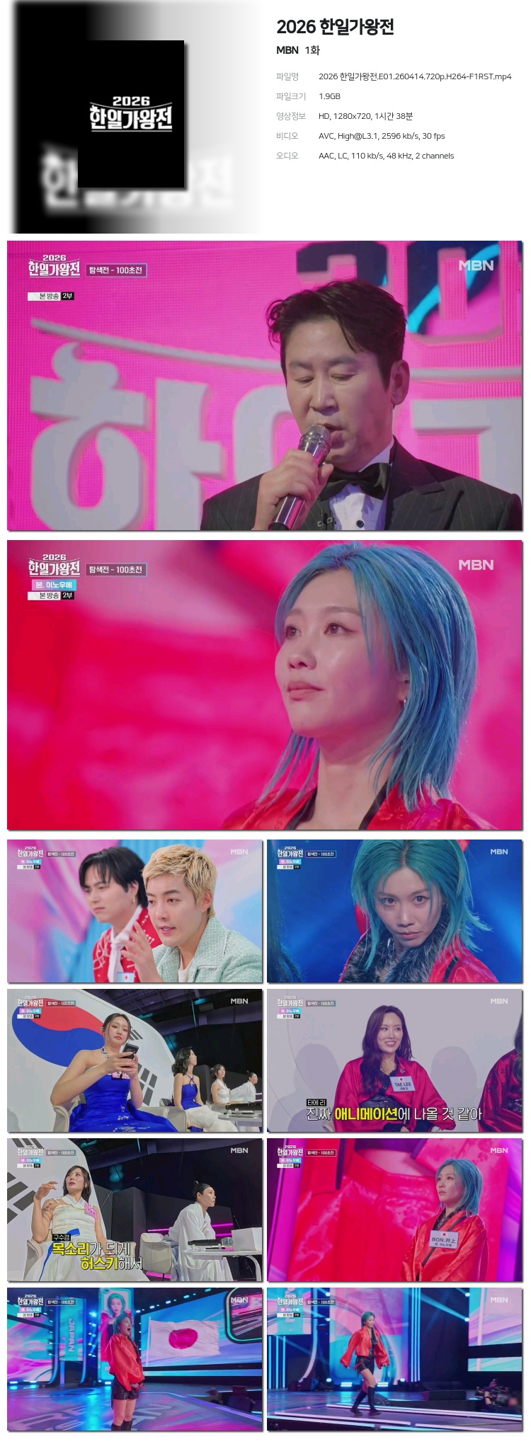 [MBN] 2026 ÇÑÀϰ¡¿ÕÀü.E01.260414.720p.H264-F1RST... 1.9G ¿¹´É