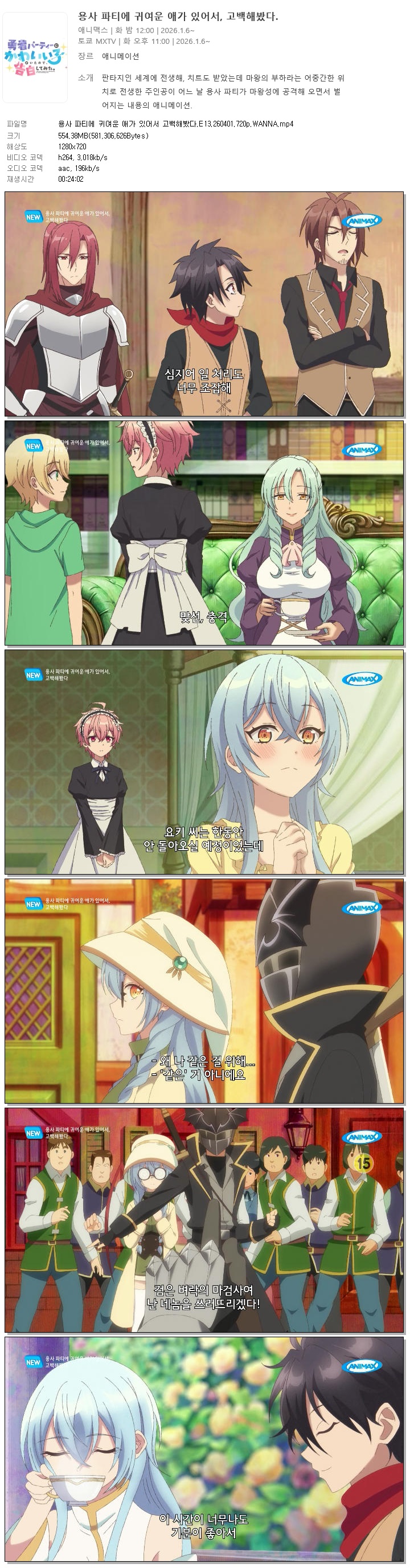 [¾Ö´Ï¸Æ½º] ¿ë»ç ÆÄƼ¿¡ ±Í¿©¿î ¾Ö°¡ À־, °í¹éÇØºÃ´Ù..E13.260401.720p.H264-F1RST... 465.4M ÃֽžִÏ