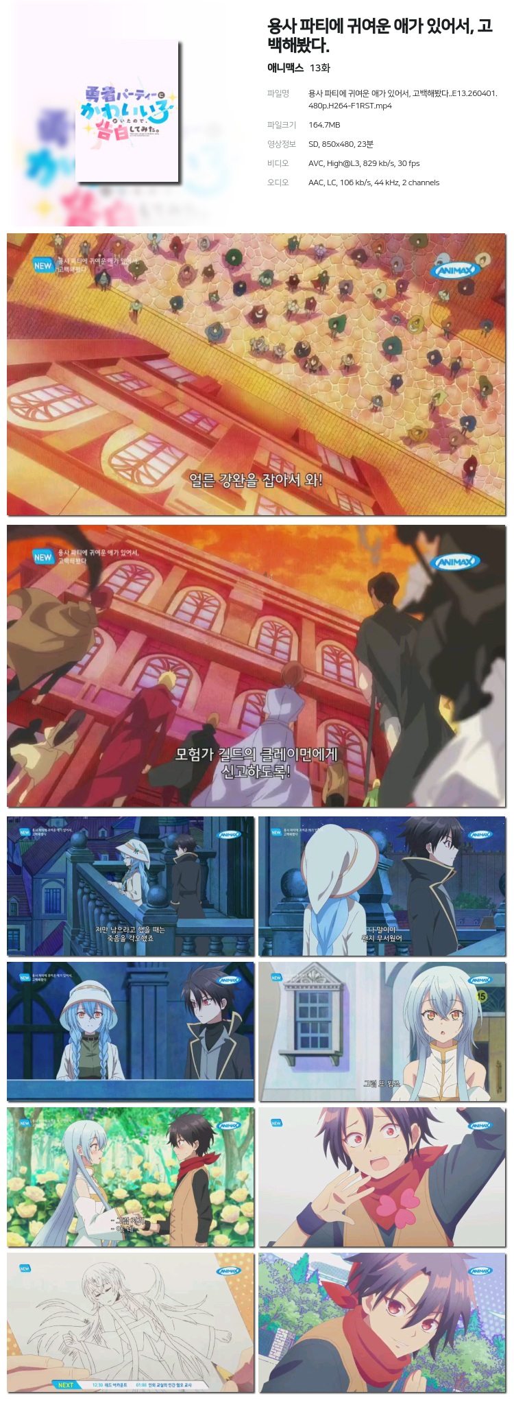 [¾Ö´Ï¸Æ½º] ¿ë»ç ÆÄƼ¿¡ ±Í¿©¿î ¾Ö°¡ À־, °í¹éÇØºÃ´Ù..E13.260401.480p.H264-F1RST... 164.7M ÃֽžִÏ