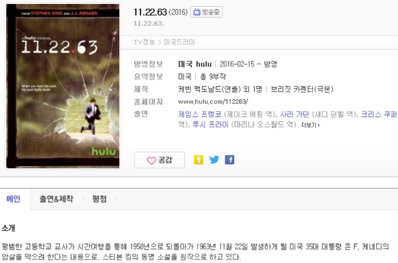 [ 11.22.63 ] 1½ÃÁð 1-8È­ [¿Ï] 720p °íÈ­Áú ÇѱÛÀÚ¸·... (2) 7.5G µå¶ó¸¶