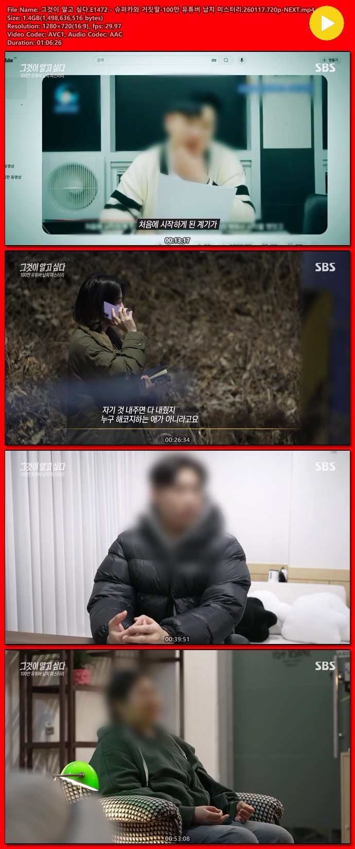 ±×°ÍÀÌ ¾Ë°í ½Í´Ù.E1472 - ½´ÆÛÄ«¿Í °ÅÁþ¸»-100¸¸ À¯Æ©¹ö ³³Ä¡ ¹Ì½ºÅ͸®.260117.720p-NEXT... 1.4G µ¿¿µ»ó