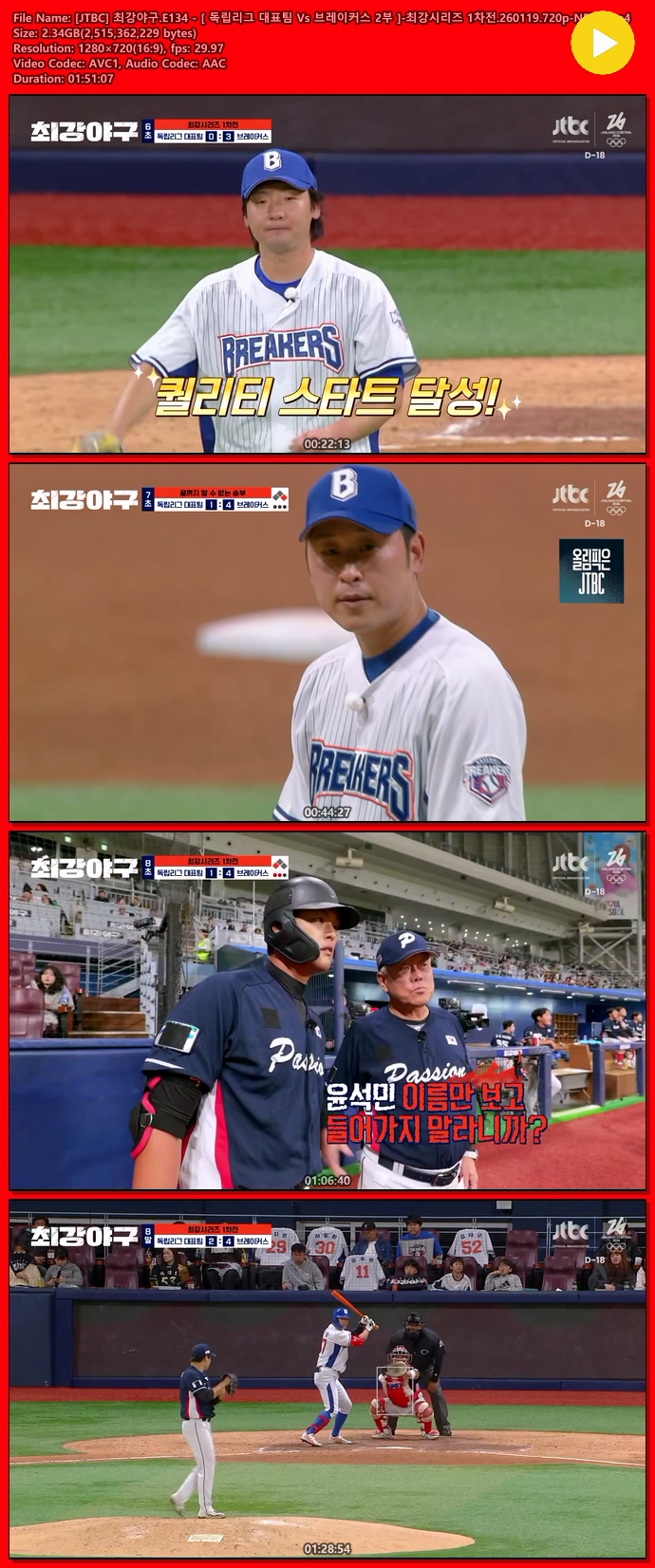 [JTBC] ÃÖ°­¾ß±¸.E134 - [ µ¶¸³¸®±× ´ëÇ¥ÆÀ Vs ºê·¹ÀÌÄ¿½º 2ºÎ ]-ÃÖ°­½Ã¸®Áî 1Â÷Àü.260119.7... 2.3G µ¿¿µ»ó