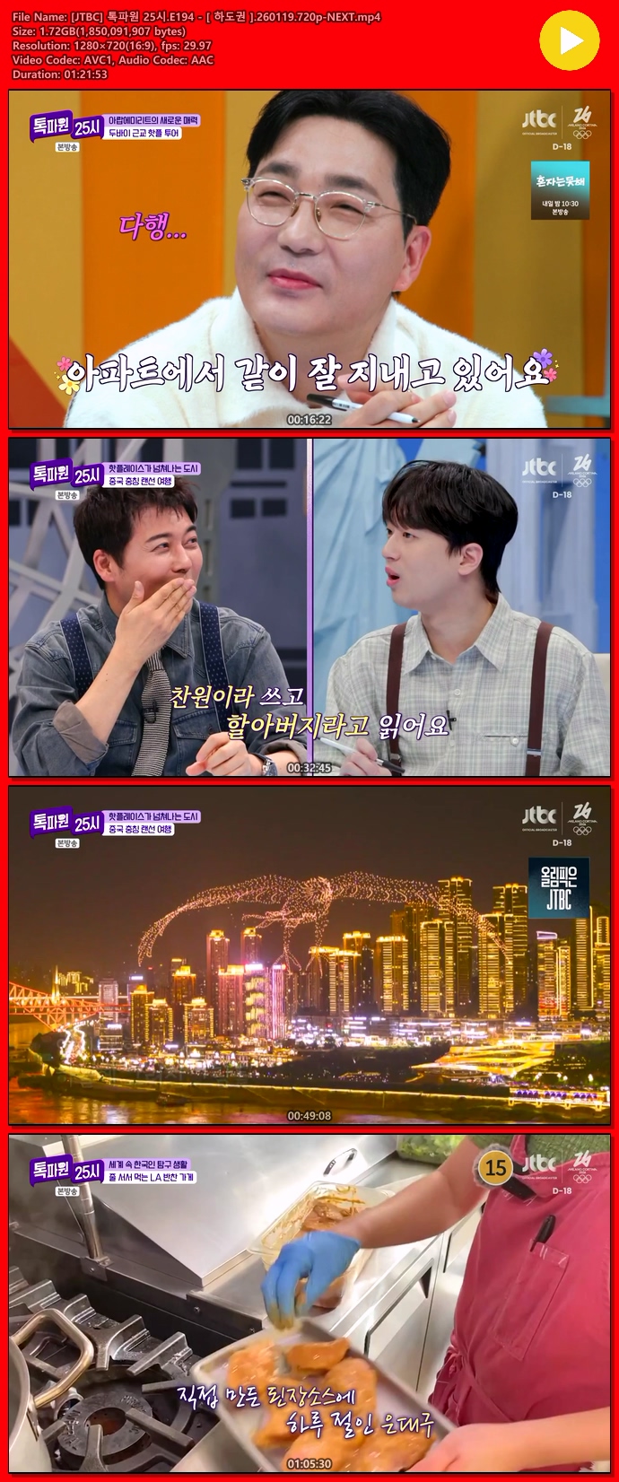 [JTBC] ÅåÆÄ¿ø 25½Ã.E194 - [ Çϵµ±Ç ].260119.720p-NEXT... 1.7G µ¿¿µ»ó
