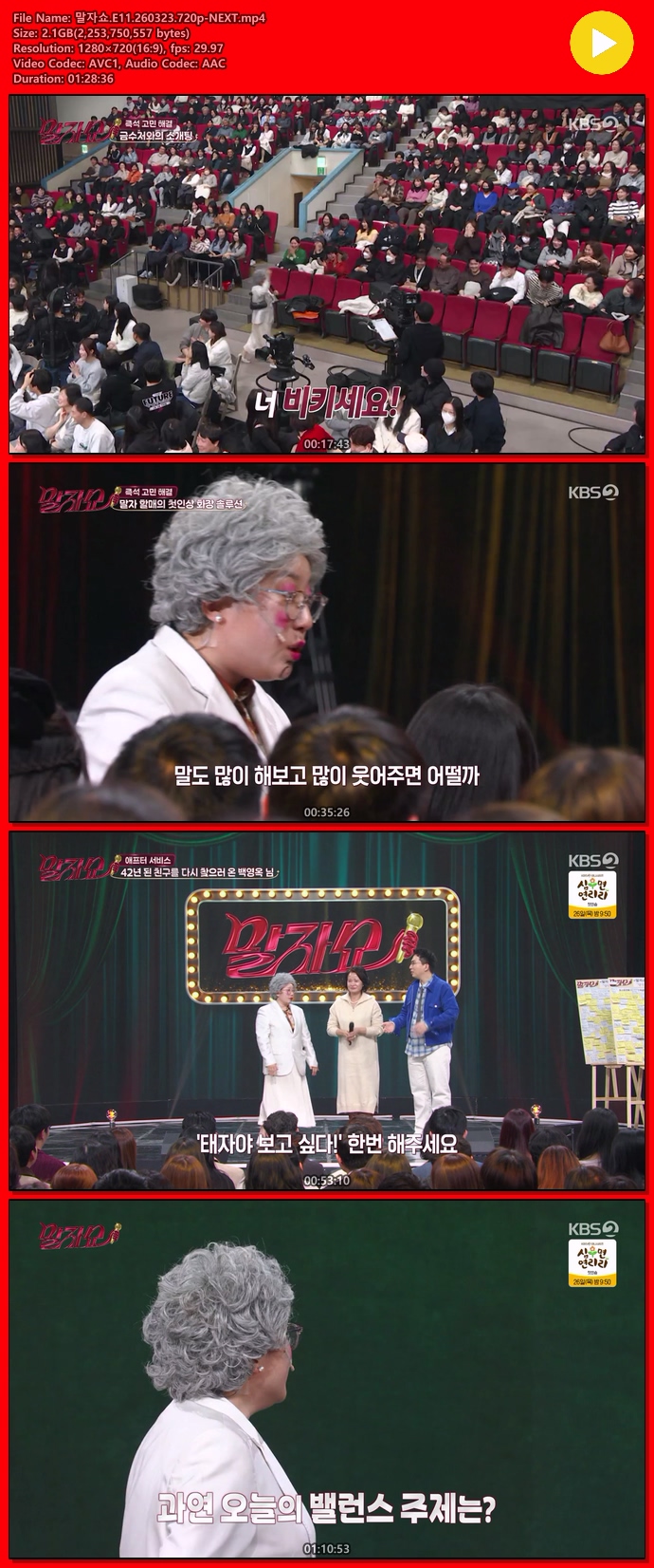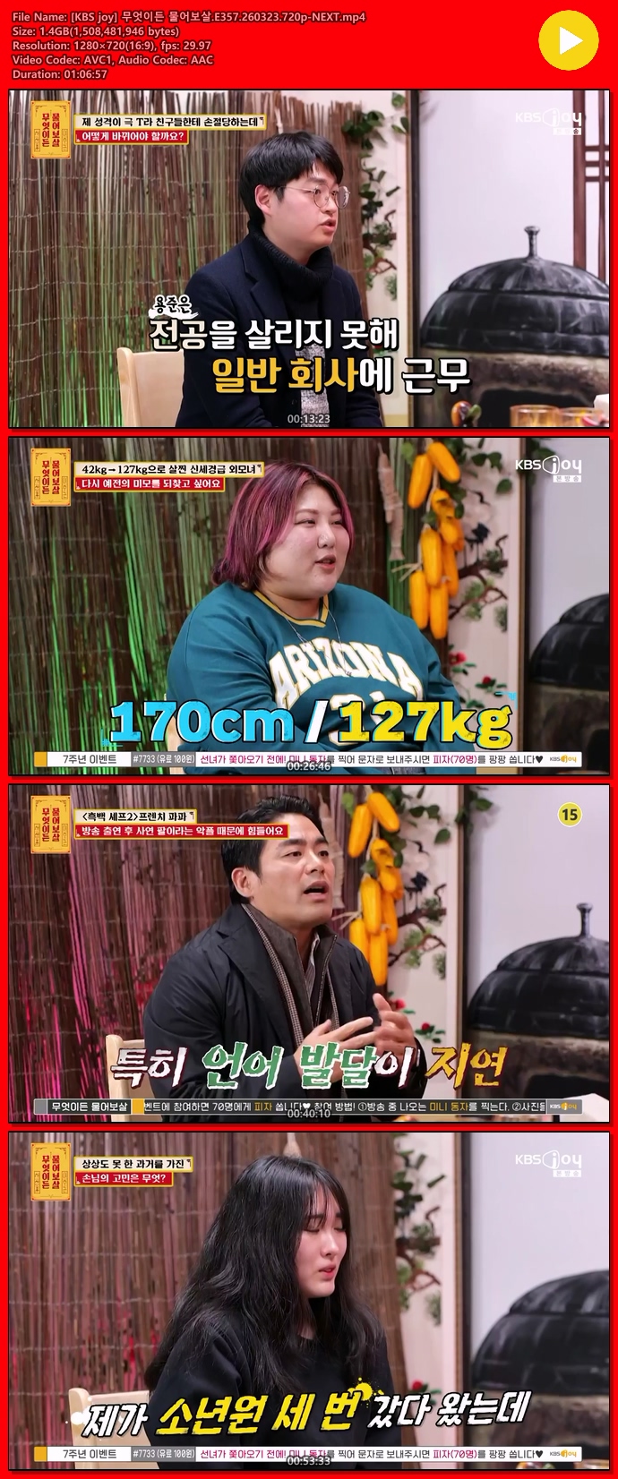 [KBS joy] ¹«¾ùÀÌµç ¹°¾îº¸»ì.E357.260323.720p-NEXT... 1.4G µ¿¿µ»ó