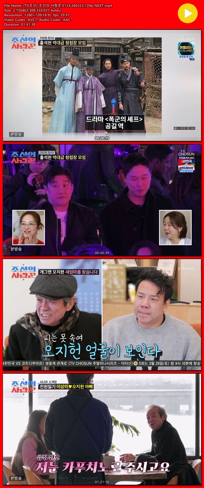 [TVÁ¶¼±] Á¶¼±ÀÇ »ç¶û²Û.E114.260323.720p-NEXT... 2.1G µ¿¿µ»ó
