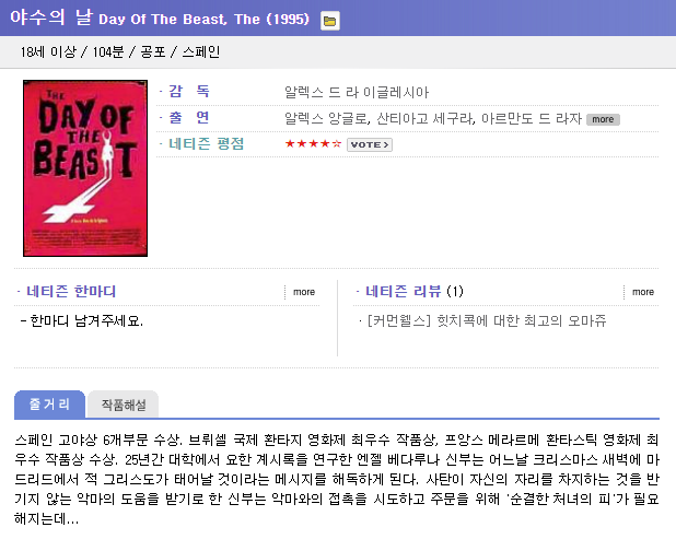 ¾ß¼öÀÇ ³¯ -1995.1080p.[°øÆ÷.½º¸±·¯.½ºÆäÀÎ] ¾Ë·º½º ¾Ó±¼·Î. »êƼ¾Æ°í ¼¼±¸¶ó... (4) 8.4G ¿µÈ­
