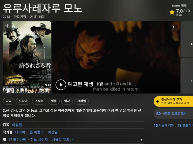 ¿ë¼­¹ÞÁö ¸øÇÑ ÀÚ [Unforgiven.2013] 1080p.[ÀÌ»óÀÏ] ¿ÍŸ³ªº£ ÄË... (1) 4.3G ¿µÈ­