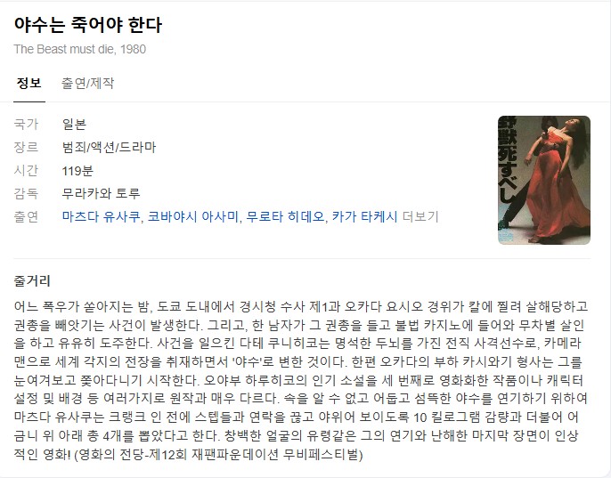 [¿µÈ­-¾×¼Ç 19] ¾ß¼ö´Â Á×¾î¾ß ÇÑ´Ù.The.Beast.to.Die.1980.1080p.ÇѱÛÀÚ¸·... (2) 2.3G ¿µÈ­