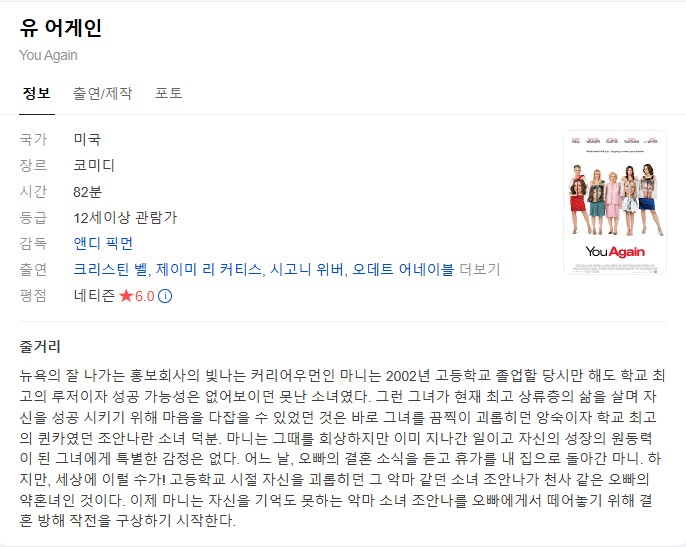 [¿µÈ­-Äڹ̵ð] À¯ ¾î°ÔÀÎ.You.Again.2010.720p.ÇѱÛÀÚ¸·... (2) 2.0G ¿µÈ­