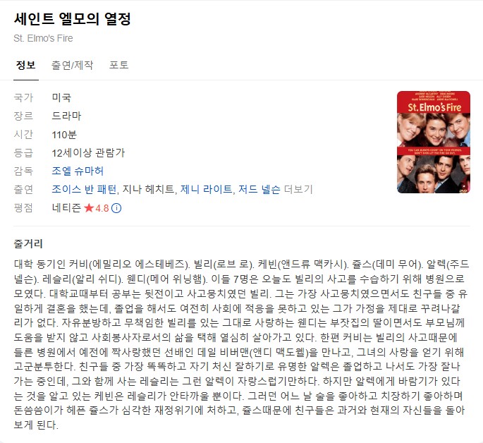 [¿µÈ­-µå¶ó¸¶] ¼¼ÀÎÆ® ¿¤¸ðÀÇ ¿­Á¤.St.Elmos Fire.1985.1080p.ÇѱÛÀÚ¸·... 2.0G µå¶ó¸¶