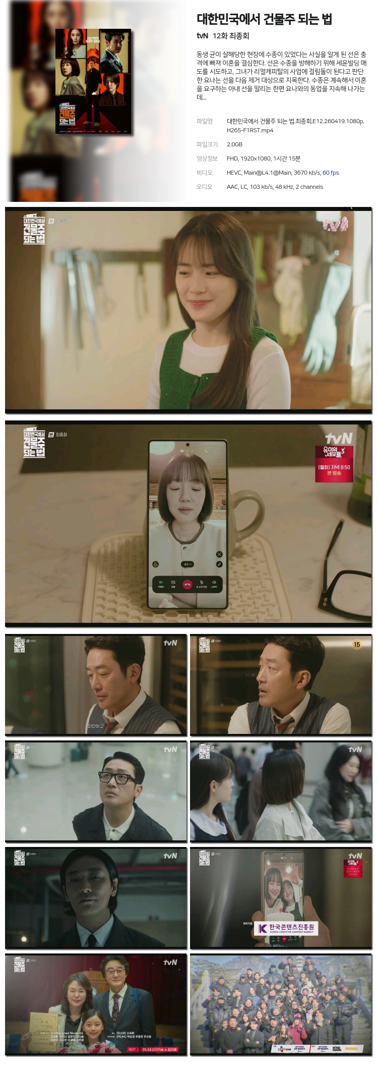 [tvN] ´ëÇѹα¹¿¡¼­ °Ç¹°ÁÖ µÇ´Â ¹ý.E11.260418.1080p.H264-F1RST [ ÀÓ¼öÁ¤ Á¤¼öÁ¤ ½ÉÀº... 2.2G Ãֽŵå¶ó¸¶
