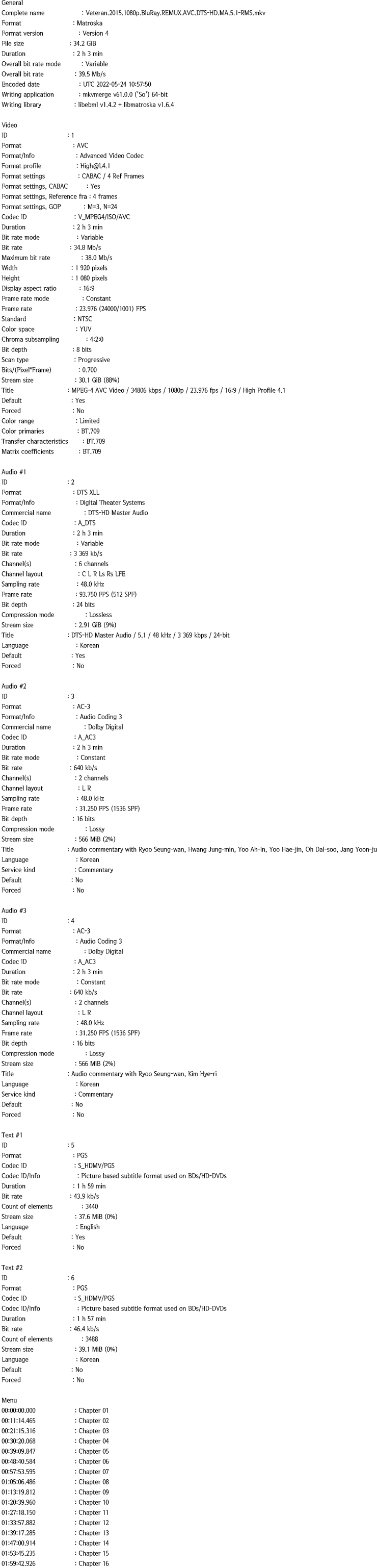 [REMUX] º£Å×¶û1 1080p [ Veteran 2015 ] ȲÁ¤¹Î.À¯¾ÆÀÎ.À¯ÇØÁø.¿À´Þ¼ö.ÀåÀ±ÁÖ.±è½ÃÈÄ.¿À´ë... 34.2G ¾×¼Ç