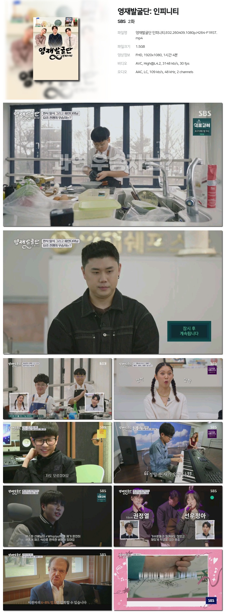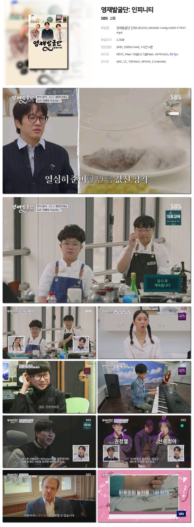 [SBS] ¿µÀç¹ß±¼´Ü: ÀÎÇÇ´ÏÆ¼.E02.260409.1440p.H265-F1RST... 2.3G ±³¾ç
