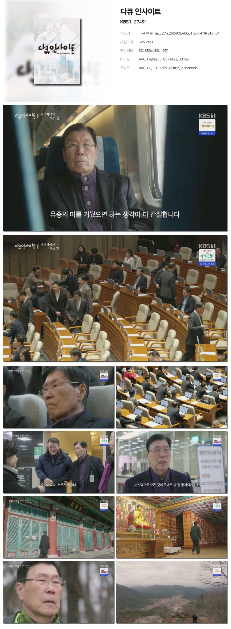 [KBS1] ´ÙÅ¥ ÀλçÀÌÆ®.E274.260409.480p.H264-F1RST... 325.2M ±³¾ç