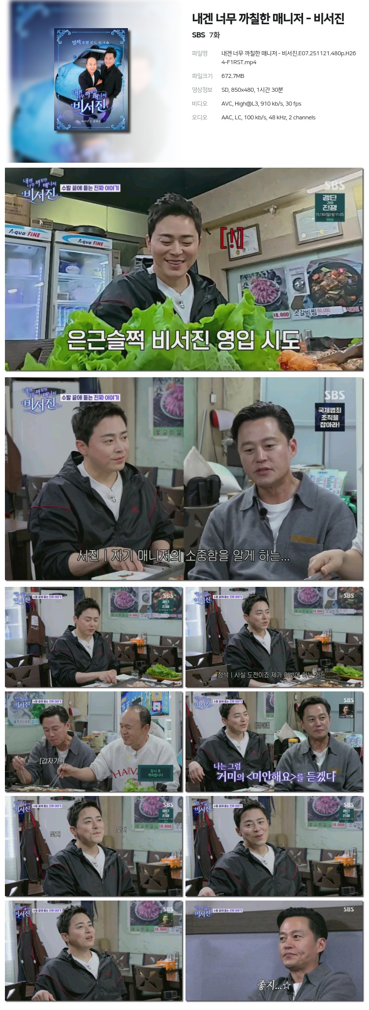 [SBS] ³»°Õ ³Ê¹« ±îÄ¥ÇÑ ¸Å´ÏÀú - ºñ¼­Áø.E07.251121.480p.H264-F1RST... 672.7M µ¿¿µ»ó
