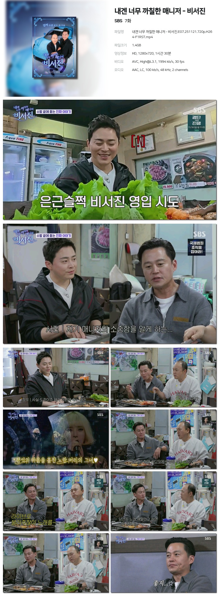 [SBS] ³»°Õ ³Ê¹« ±îÄ¥ÇÑ ¸Å´ÏÀú - ºñ¼­Áø.E07.251121.720p.H264-F1RST... 1.4G µ¿¿µ»ó
