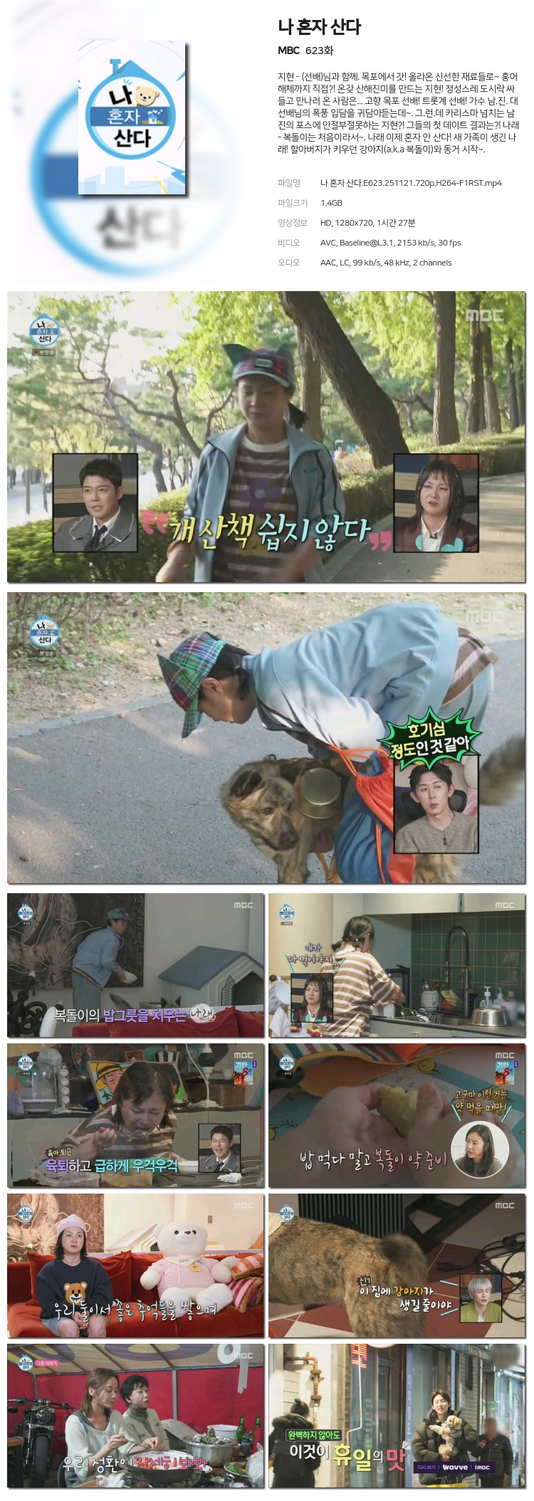[MBC] ³ª È¥ÀÚ »ê´Ù.E623.251121.720p.H264-F1RST... 1.4G µ¿¿µ»ó