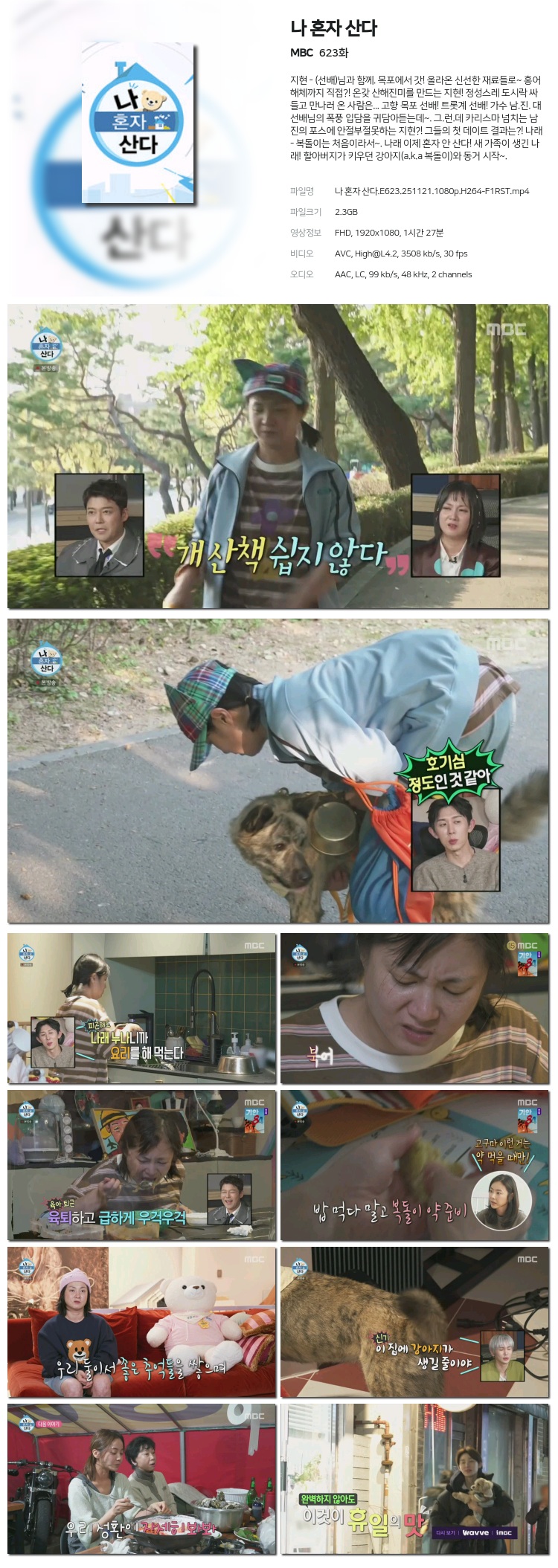 [MBC] ³ª È¥ÀÚ »ê´Ù.E623.251121.1080p.H264-F1RST... 2.3G µ¿¿µ»ó