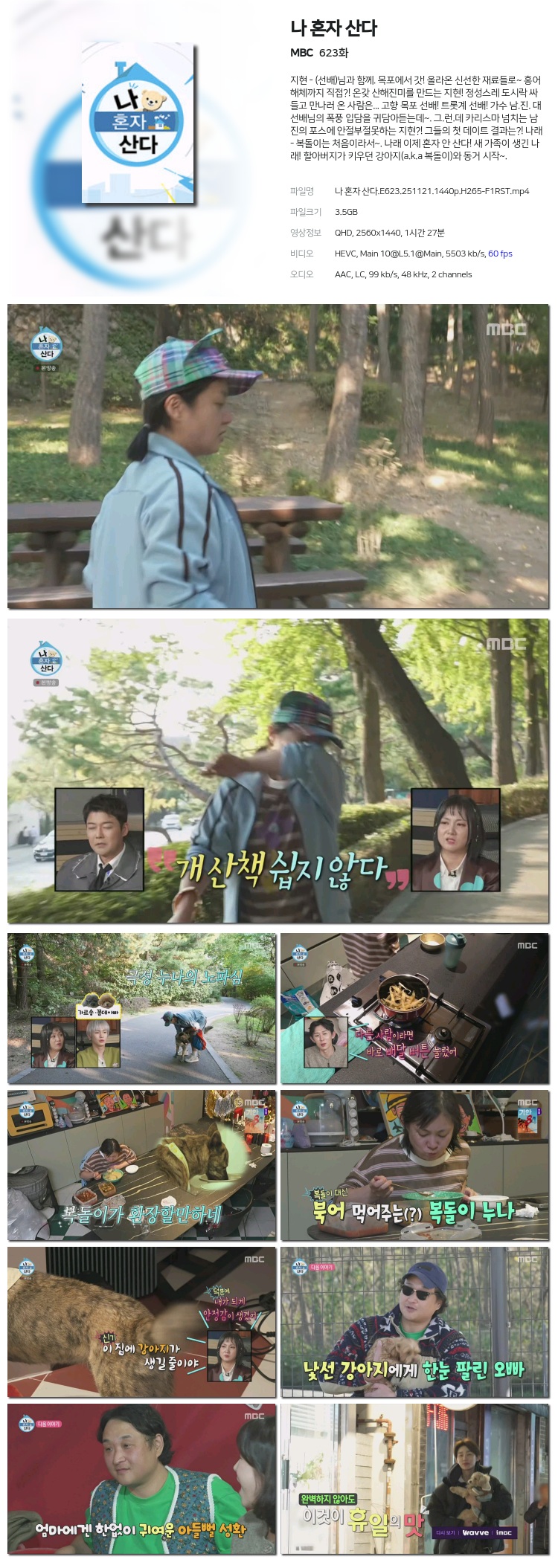 [MBC] ³ª È¥ÀÚ »ê´Ù.E623.251121.1440p.H265-F1RST... 3.5G µ¿¿µ»ó