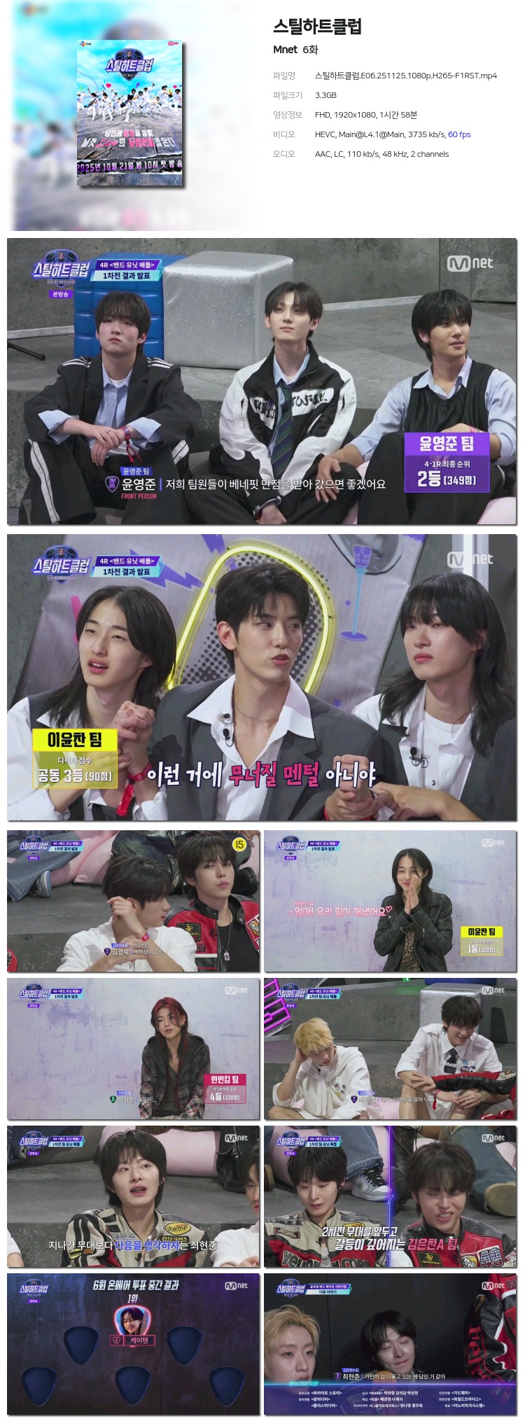 [Mnet] ½ºÆ¿ÇÏÆ®Å¬·´.E06.251125.1080p.H265-F1RST... 3.3G µ¿¿µ»ó