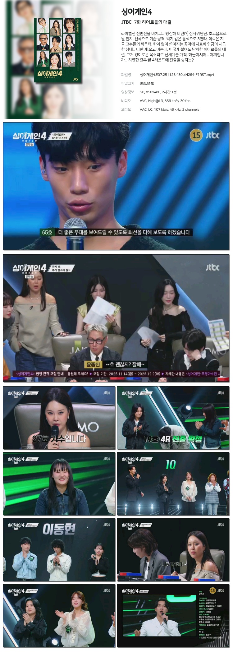 [JTBC] ½Ì¾î°ÔÀÎ4 È÷¾î·ÎµéÀÇ ´ë°á.E07.251125.480p.H264-F1RST... 865.6M µ¿¿µ»ó