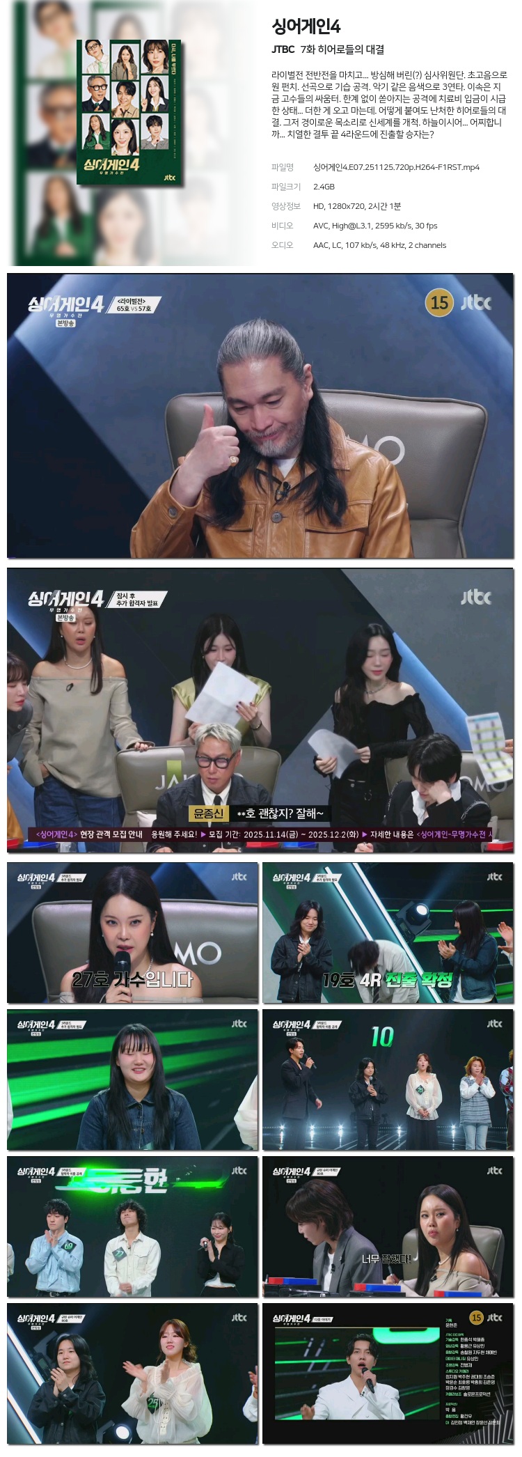 [JTBC] ½Ì¾î°ÔÀÎ4 È÷¾î·ÎµéÀÇ ´ë°á.E07.251125.720p.H264-F1RST... 2.4G µ¿¿µ»ó