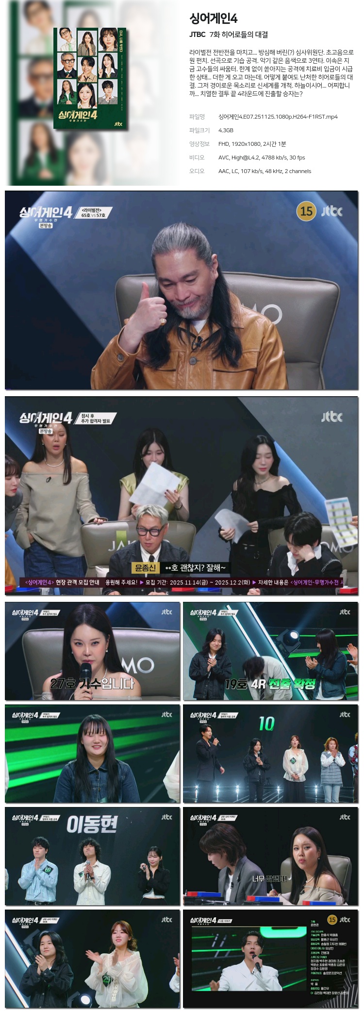 [JTBC] ½Ì¾î°ÔÀÎ4 È÷¾î·ÎµéÀÇ ´ë°á.E07.251125.1080p.H264-F1RST... 4.3G µ¿¿µ»ó