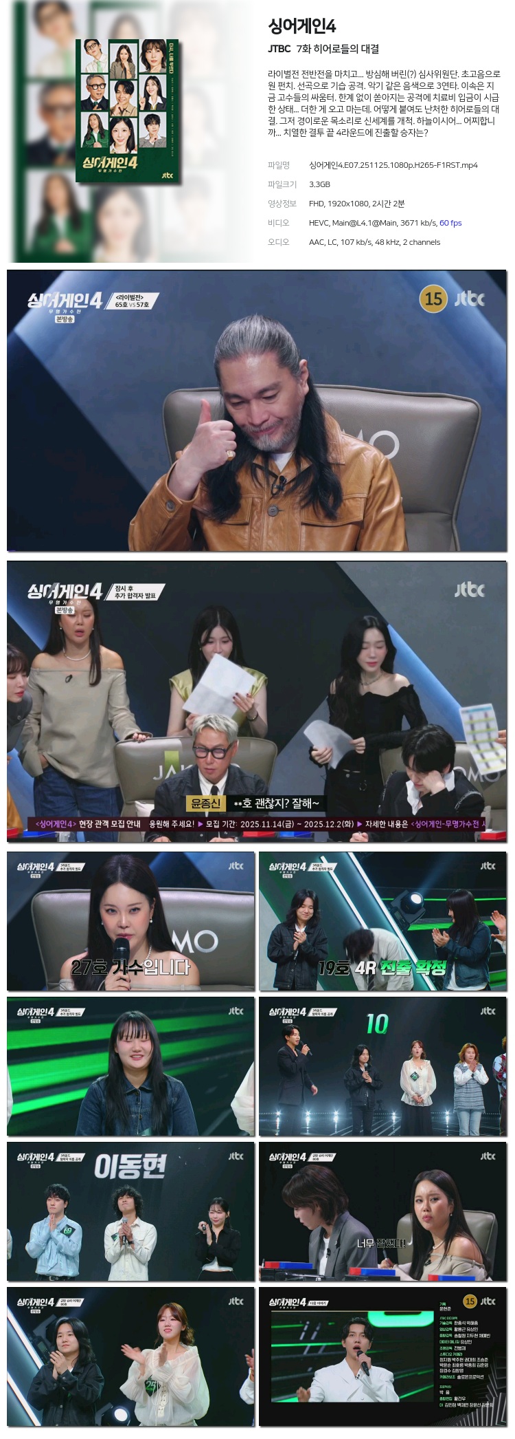 [JTBC] ½Ì¾î°ÔÀÎ4 È÷¾î·ÎµéÀÇ ´ë°á.E07.251125.1080p.H265-F1RST... 3.3G µ¿¿µ»ó