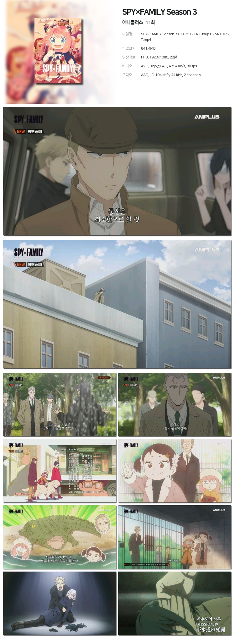 [¾Ö´ÏÇ÷¯½º] SPY¡¿FAMILY Season 3.E11.251214.1080p.H264-F1RST... 841.4M ¾Ö´Ï