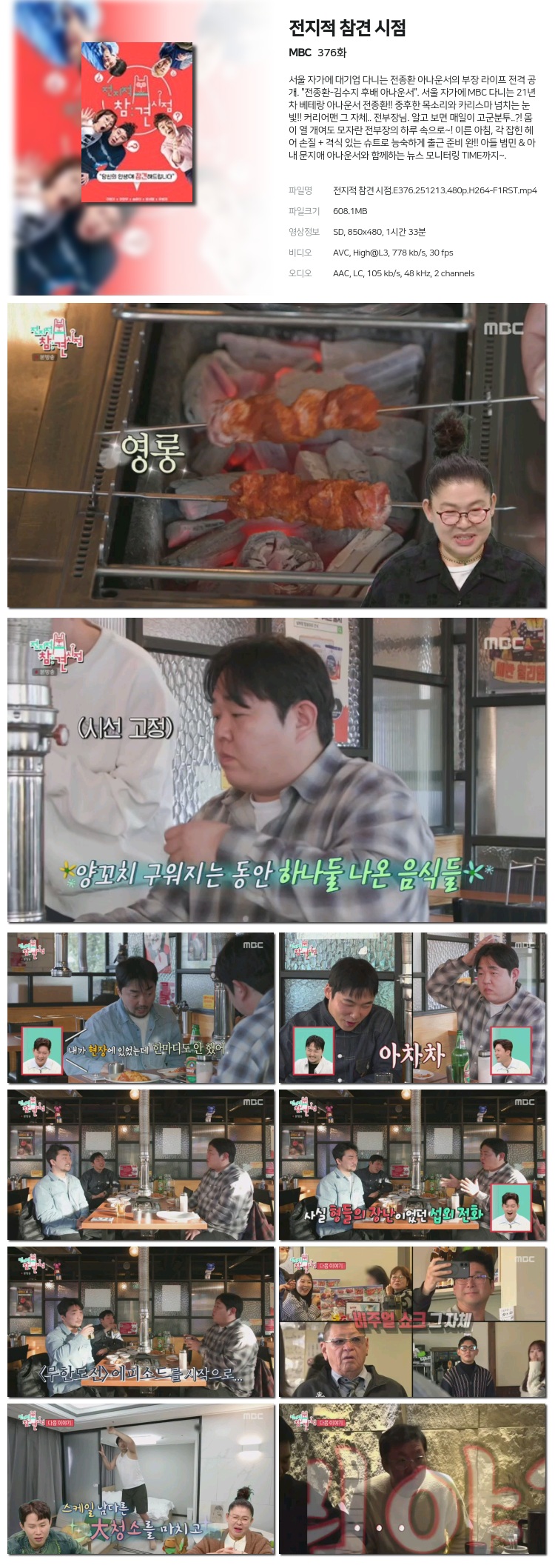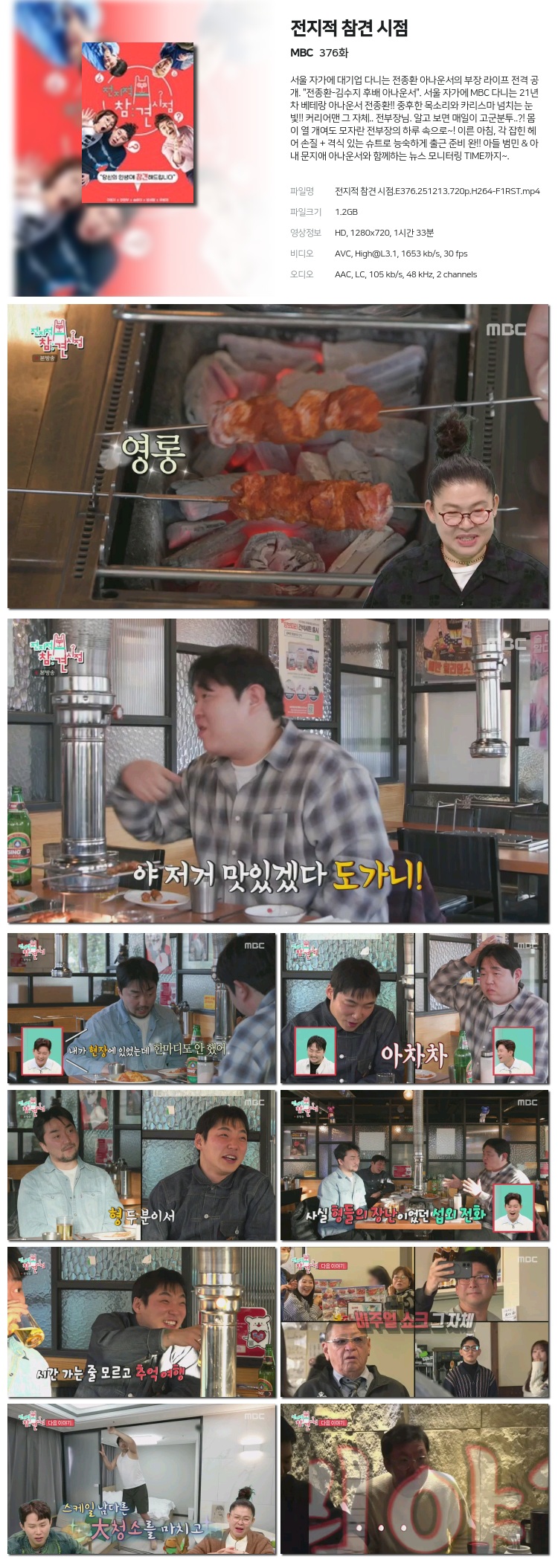 [MBC] ÀüÁöÀû Âü°ß ½ÃÁ¡.E376.251213.720p.H264-F1RST... 1.2G µ¿¿µ»ó