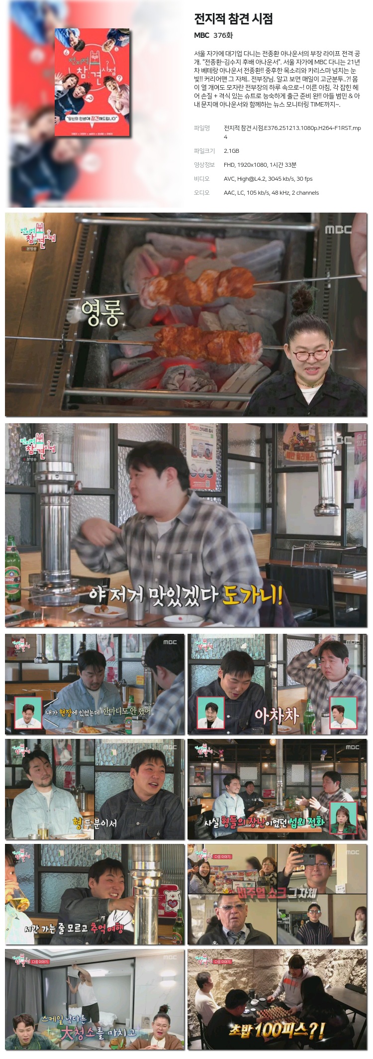 [MBC] ÀüÁöÀû Âü°ß ½ÃÁ¡.E376.251213.1080p.H264-F1RST... 2.1G µ¿¿µ»ó