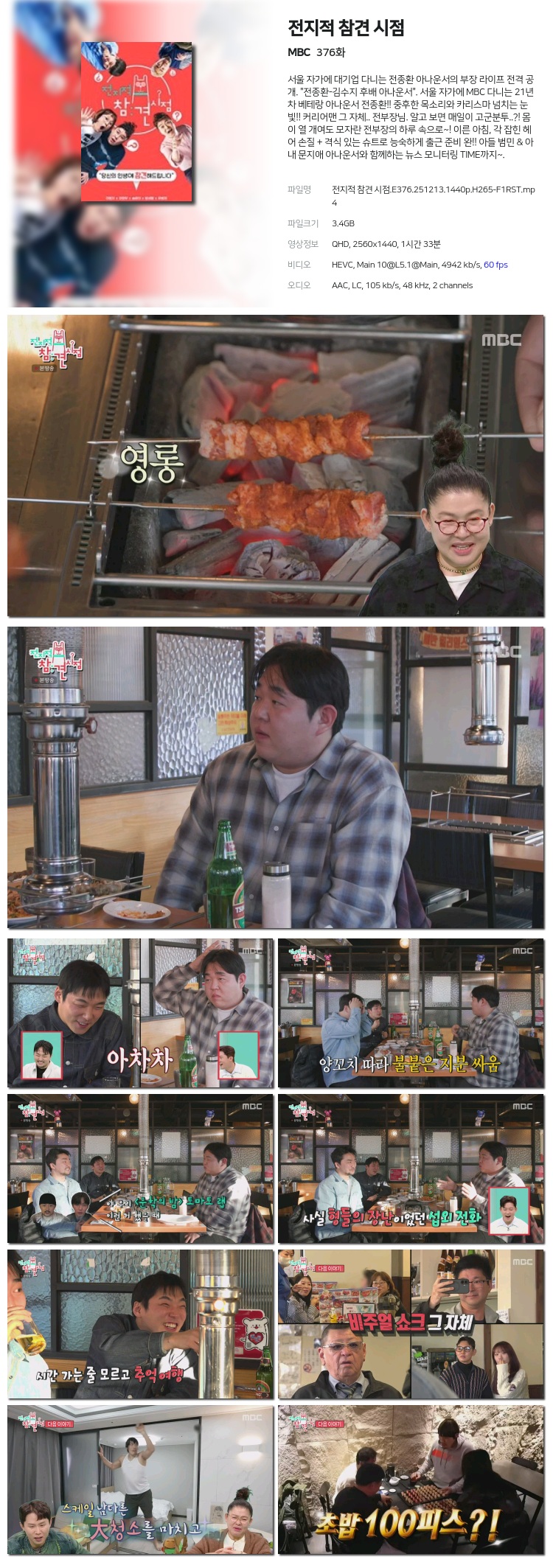 [MBC] ÀüÁöÀû Âü°ß ½ÃÁ¡.E376.251213.1440p.H265-F1RST... 3.4G µ¿¿µ»ó