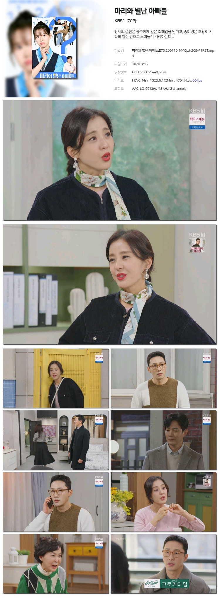 [KBS1] ¸¶¸®¿Í º°³­ ¾Æºüµé.E70.260116.1440p.H265-F1RST... 1,020.8M µå¶ó¸¶